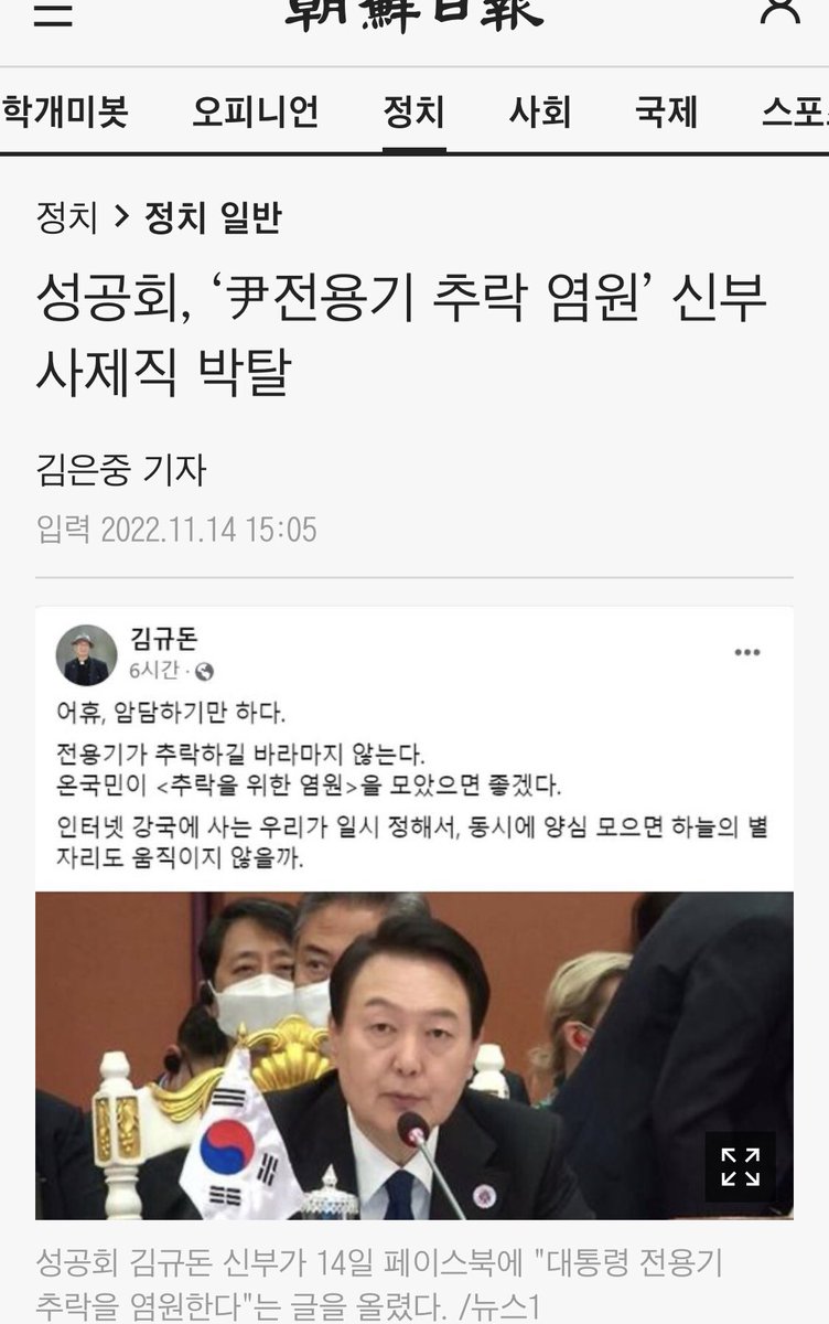 Web 대한성공회 대전교구는 14일 해외 순방을 하고 있는 윤석열 대통령의 전용기가 추락하기를 바란다는 취지의 글을 써서 논란이 된 김규돈 신부의.